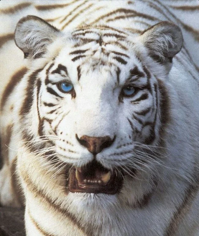 Белые тигры ещё одни обладатели невероятно красивых голубых глаз. В отличие от других животных ген, ответственный за голубые глаза, у них связан с белой шерстью. Оба признака наследуются по рецессивному типу.