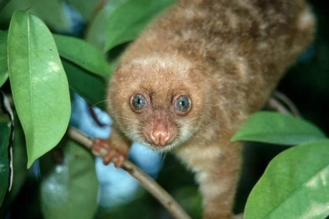 Этот небольшой сумчатый эндемик индонезийских островов Тернате и Тидоре обладает красивыми голубыми глазами. Этот оттенок связан с его уникальным светлым мраморным окрасом шерсти, в то время как у других кускусов глаза бывают оранжевыми или красноватыми.