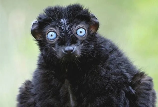 Хотя у большинства приматов тёмные глаза, у чёрного лемура они преимущественно голубые. Голубые глаза лемуров вызваны особой генетической аномалией.