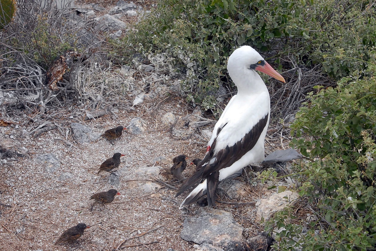 Отдельного упоминания стоит вьюрок-вампир, представляющий собой пример крайнего и очень быстрого приспособления к жёстким условиям. Птицы обитают только на островах Вольф и Дарвин – на самых каменистых и неприветливых островах архипелага. Здесь нет источников пресной воды, поэтому птицы находятся в вечной зависимости от дождей. И от крови других птиц. Чтобы выжить, в сезон засухи они вынуждены нападать на гнездящихся здесь морских птиц, наносить им раны и пить их кровь.