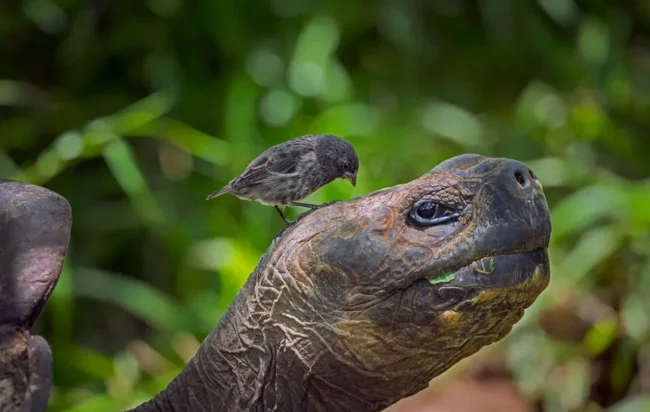 Только вот на этом их эволюция не остановилась. Каждый вид стал разделяться на новые, ещё более специализированные виды со своими уникальными особенностями. Малый земляной вьюрок, например, подружился с галапагосскими черепахами и игуанами. Теперь немалую долю его рациона составляют паразиты этих рептилий.