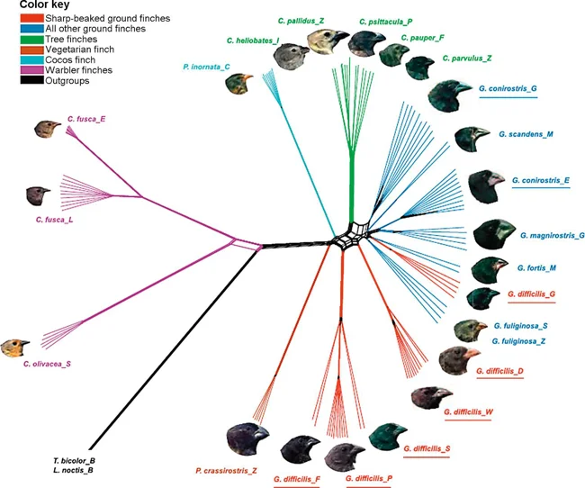 Около 2–3 миллионов лет назад общий предок этих птиц оказался на острове, где со временем дал начало почти двум десяткам видов, отличающихся друг от друга особенностями питания и поведения.