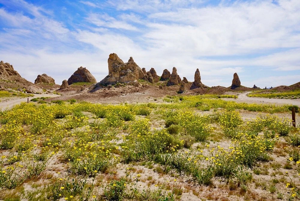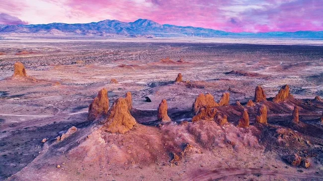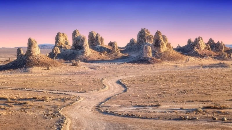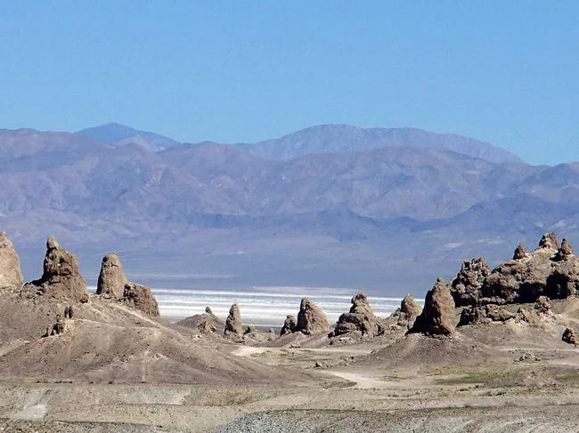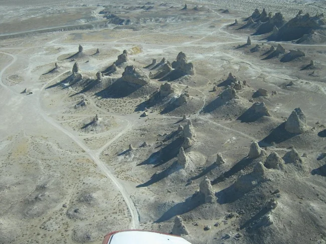 Посреди калифорнийской пустыни Мохаве, на дне высохшего озера Сирлс, застыл фантастический пейзаж — Трона Пинаклс (Trona Pinnacles).