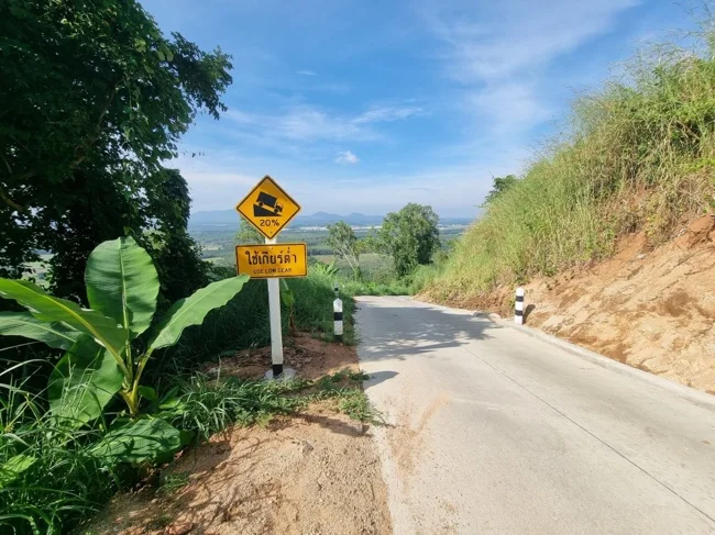 Эта горка не скользкая, но уклон такой, что далеко не каждый способен на неё заехать. Проектировщики явно издеваются над людьми. Пишут, что это дорога к площадке для параглайдинга с уклоном 20%. Ботхонг, Таиланд.