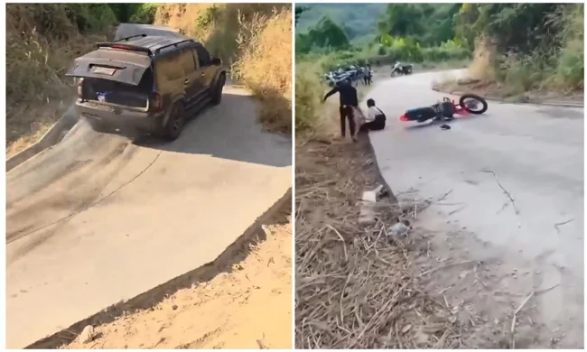 Такая горка не каждому по силам (2 фото + 1 видео) Категория: Аварии, PEGI 0+ Сегодня, 05:35 Эта горка не скользкая, но уклон такой, что далеко не каждый способен на неё заехать. Проектировщики явно издеваются над людьми. Пишут, что это дорога к площадке для параглайдинга с уклоном 20%. Ботхонг, Таиланд. 0 Авто, Видео, Таиланд, автомир, автомобили, горка, машина, мотоцикл