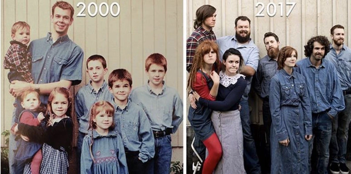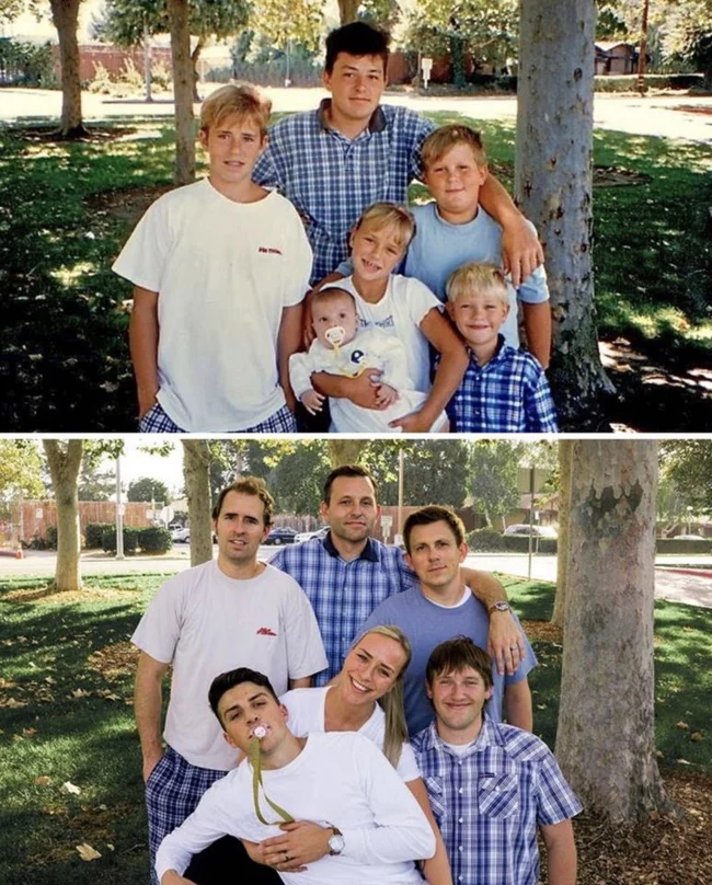 Они сумели найти того же фотографа, чтобы спустя 20 лет сделать новый снимок