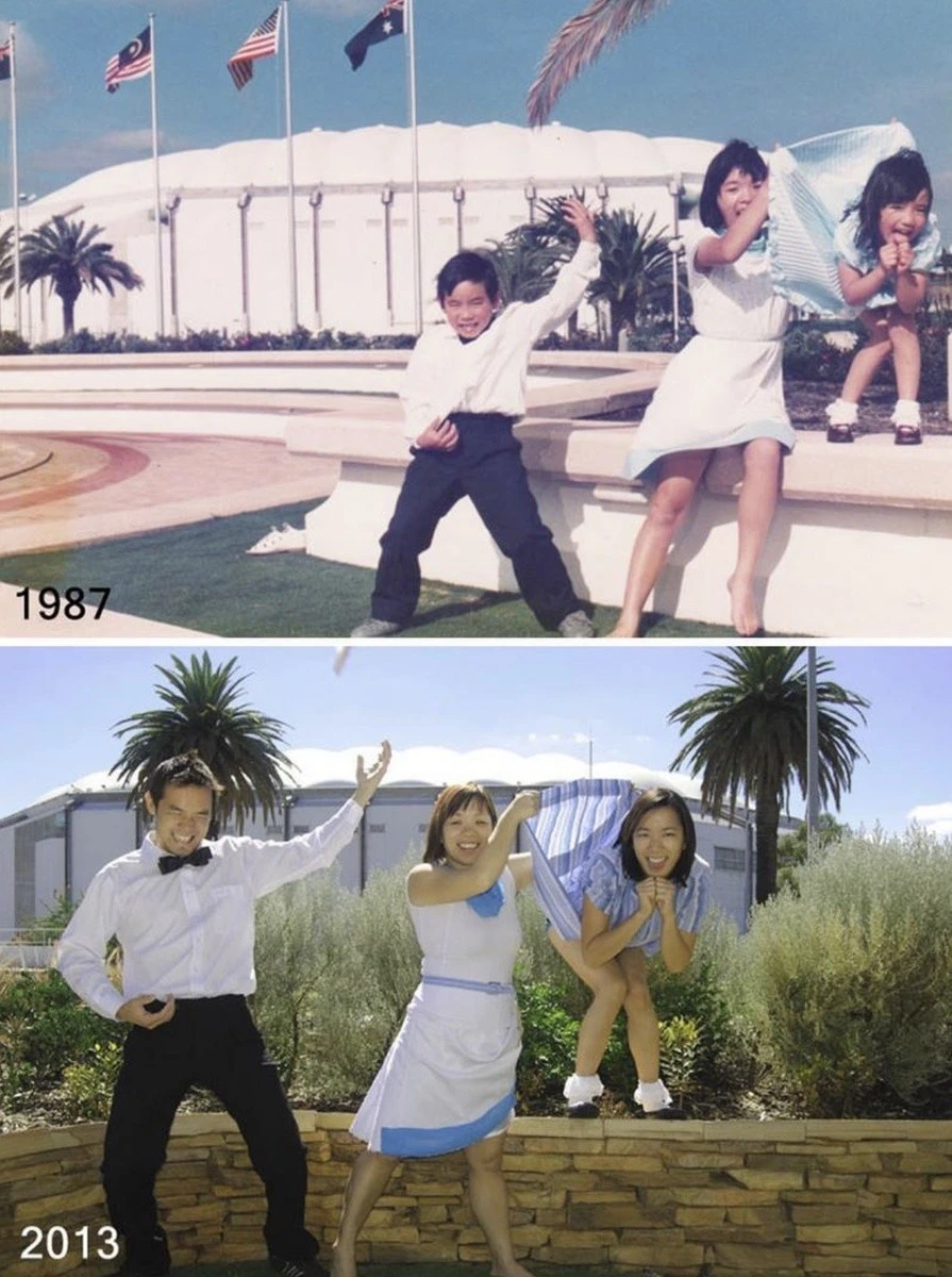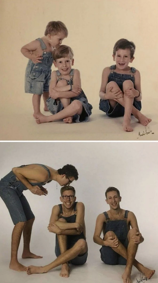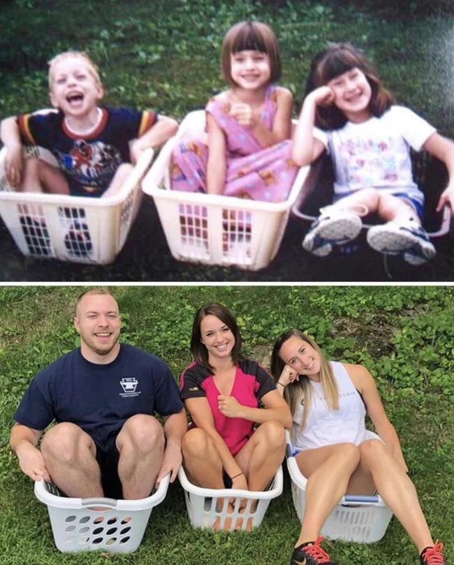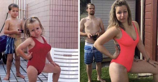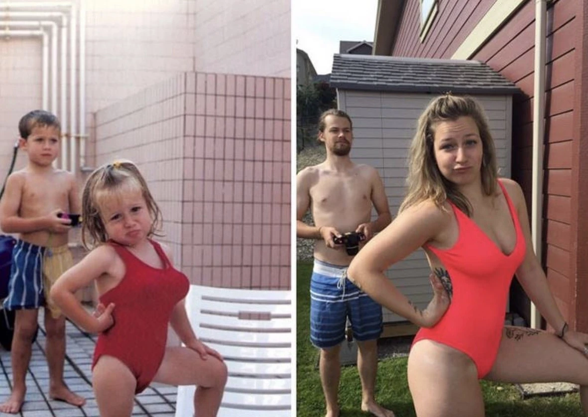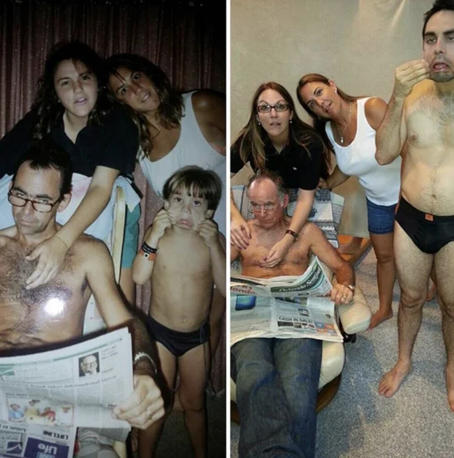 30+ примеров народного развлечения — уже взрослыми воссоздавать старые детские фото (34 фото)