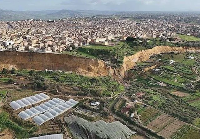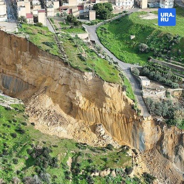 Огромный обрыв угрожает целому городу Нишеми в Италии (2 фото + видео)