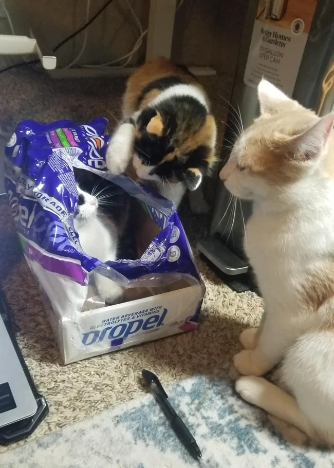 Поскольку пушистым аферистам свойственны преимущественно проделки (и они об этом прекрасно знают), то, будучи застуканными на месте, они ухитряются принять настолько невинный вид, что поневоле перестаёшь верить своим глазам.