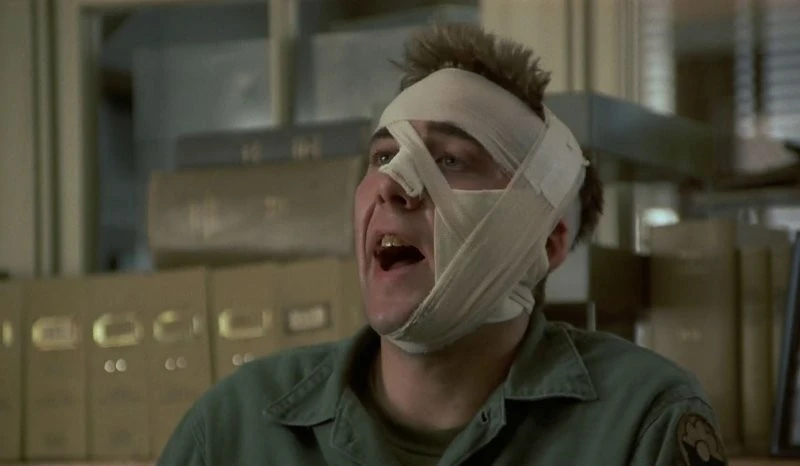 Мужчина в военной форме сидит с перевязанным лицом, усталый и измождённый, в комнате с мягким светом. Ему поневоле сопереживаешь. В фильме «Птаха» Николас Кейдж играл травмированного ветерана Вьетнама. Чтобы достоверно изобразить его боль, он удалил себе зуб полностью в сознании, без анестезии.
