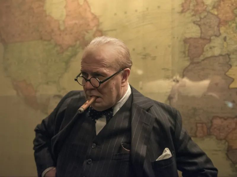 Пожилой мужчина в жилете и очках курит сигару в полумраке комнаты, выпуская клубы дыма. И это очень выразительно. Чтобы перевоплотиться в Уинстона Черчилля в «Тёмных временах», Гэри Олдмен выкурил более 400 сигар за время съёмок. И это были не бутафорские изделия. Каждая сцена требовала того самого постоянного сигарного дыма, которым славился британский премьер.