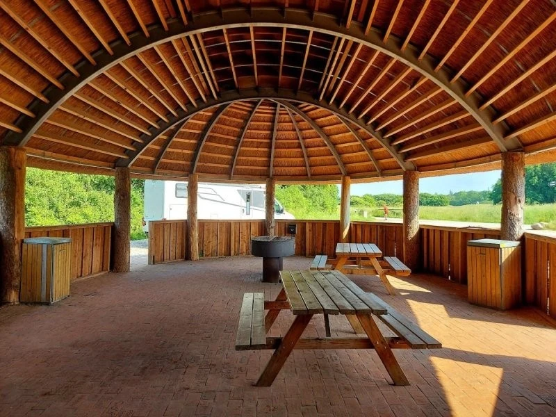 Уникальная конструкция на стальном каркасе с деревянной обшивкой под тростником родилась благодаря сотрудничеству нескольких компаний и труду волонтёров из числа скаутов. Среди добровольцев были инженеры, плотники и электрики, которые трудились от рассвета до заката несколько месяцев подряд. Их общее дело стало воплощением духа скаутского движения, вложившего в проект всю душу.