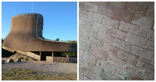 Этот причудливый архитектурный объект достигает в длину 24 метров. Носок исполинского ботинка служит крытой площадкой для пикников с мангалом. В его голенище разместились санузел и лестница, ведущая на смотровую площадку на высоте 12 метров.