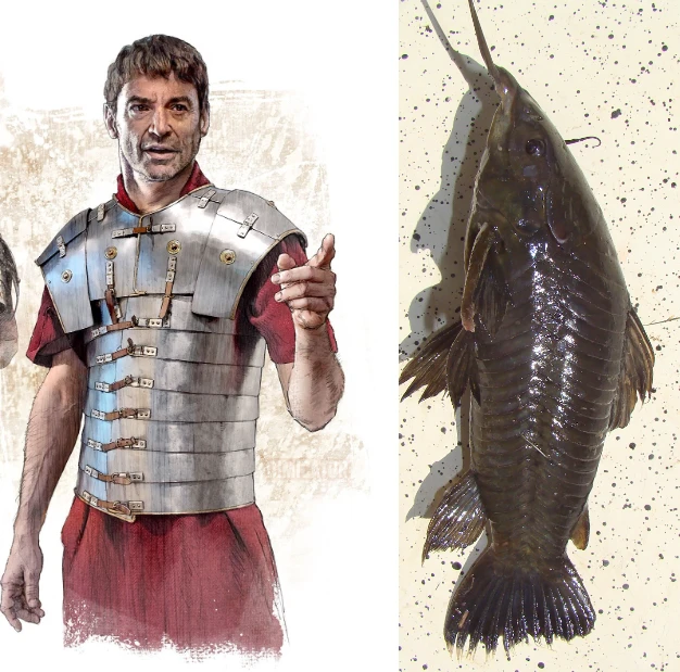 В таких маленьких и заросших озёрах нет никакого смысла в изящных формах и высокой скорости, поэтому все местные жители упоролись по маскировке или защите. Панцирные сомы, как вы догадались, пошли по второму пути. Они отказались от маленьких гибких рыбьих чешуек в пользу длинных широких пластин, которые, наслаиваясь друг на друга, превращаются в пластинчатую броню, прямо как у легионеров Римской Империи. И со своей задачей она справляется отлично.