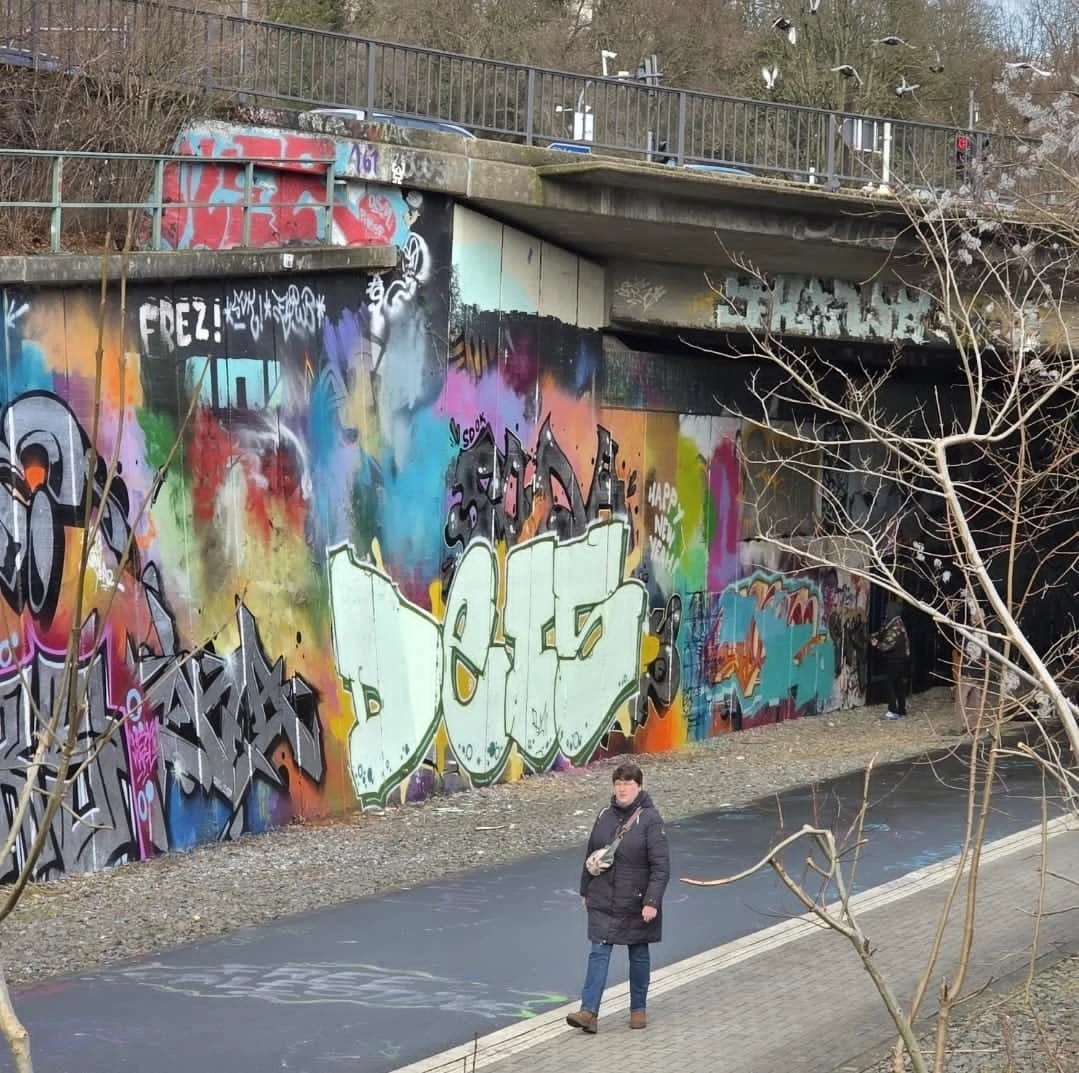 Как-то городские службы официально разрешили мазать стену под мостом, рядом с велотрассой и мне довелось увилеть граффитчиков за их "творчеством".