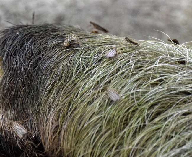 Те самые домашние ленивцевые водоросли. Под буквой D можно увидеть, как они располагаются на волоске животного.