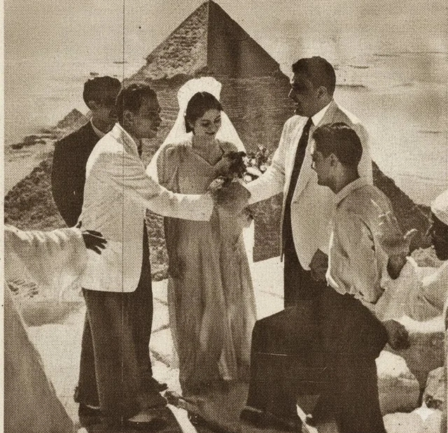 Невероятные кадры 1948 года: свадебная церемония на вершине пирамиды в Гизе. Смелое сочетание древнего величия и личного торжества, застывшее во времени.