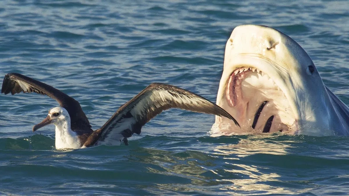 Биология большой белой акулы толкнула её на пьедестал суперхищника. И она пользуется правом сильного по-максимуму! Белая акула — охотник на охотников. Её добыча — это крупные рыбы, ластоногие, дельфины, морские свиньи и даже другие акулы.
