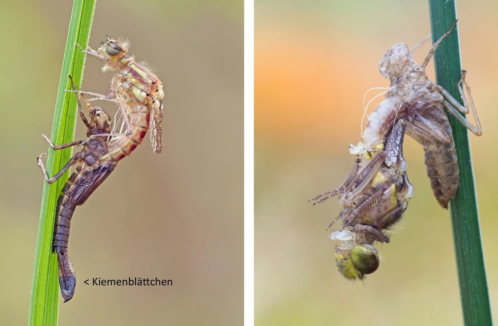 Стрекоза вылезает из своей старой оболочки. Теперь она взрослая!