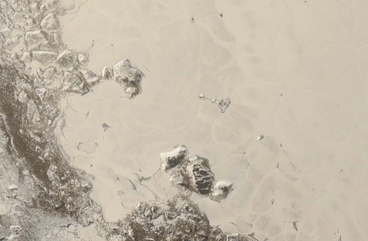 Западную часть этой области занимает Равнина Спутника (лат. Sputnik Planitia), представляющая собой ледяную равнину размером 1 400 на 1 200 километров. И именно эта равнина привлекает особое внимание.