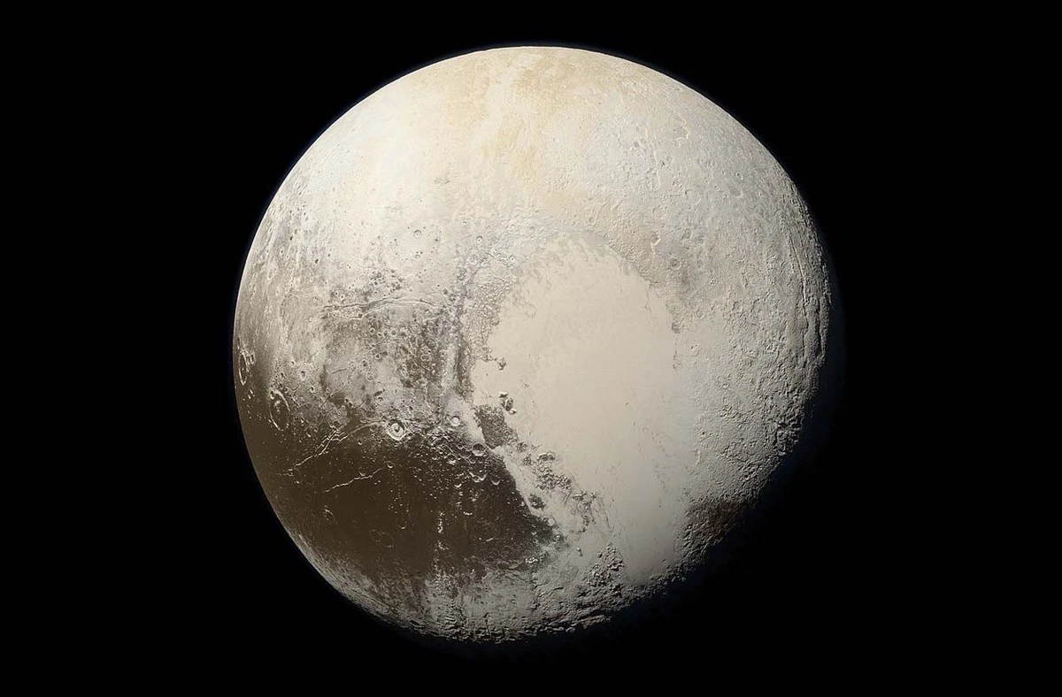 Снимок Плутона в естественных цветах, полученный зондом "Новые горизонты" 14 июля 2015 года с расстояния 35 445 километров