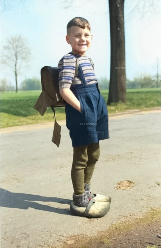 Нидерландский школьник в кломпах на толстый шерстяной носок, середина XX века.