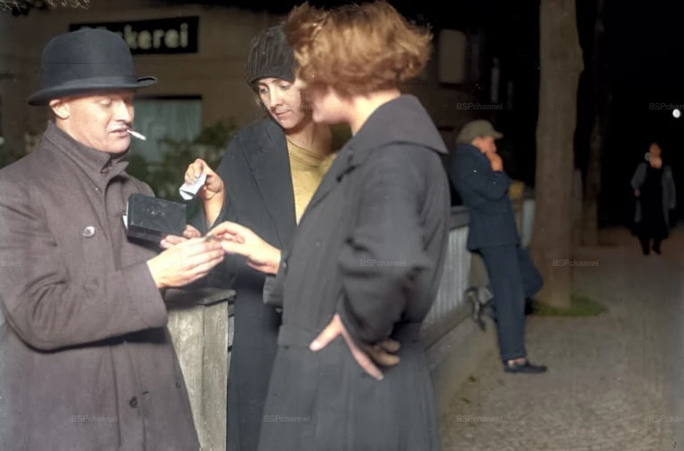 Проститутки покупают запрещенные вещества у нелегального уличного дилера — «коксового Эмиля» на жаргоне того времени. Берлин, май 1929 года.