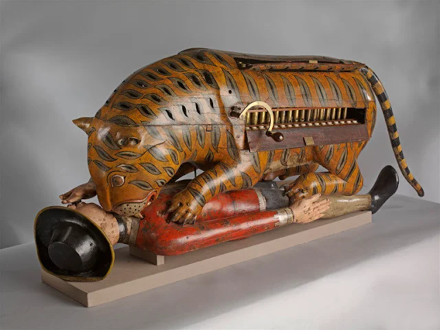 Победители принялись грабить казну, а несколько недель спустя среди сокровищ в дворцовой музыкальной комнате обнаружили диковинный предмет. Это был крупный деревянный автомат, изображавший тигра, терзающего человека в европейском платье.