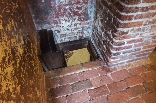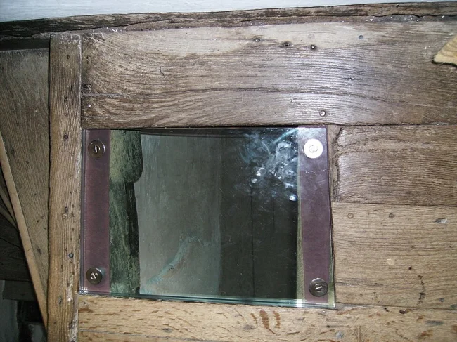 Через окна в полу видно тайное убежище священника