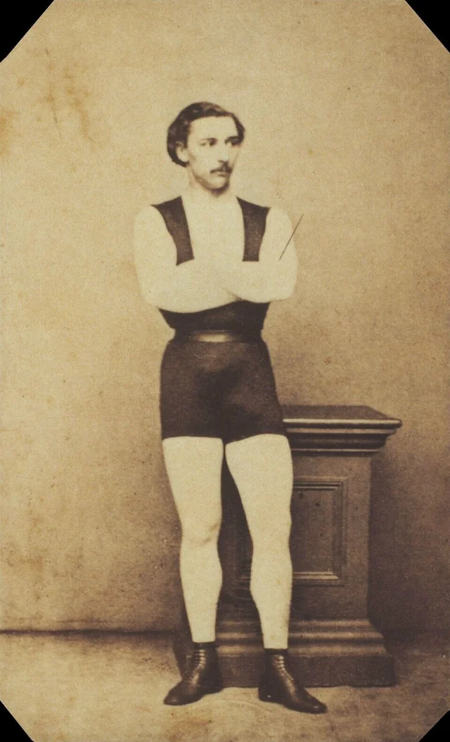 Жюль Леотар готовился стать юристом, но после экзаменов его захватил цирк. Сын гимнаста, он тренировался, выполняя трюки над бассейном отца. Чтобы одежда не сковывала движения и не цеплялась за верёвки, Жюль придумал облегающий трикотажный костюм.