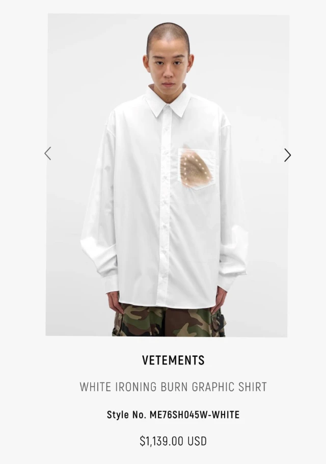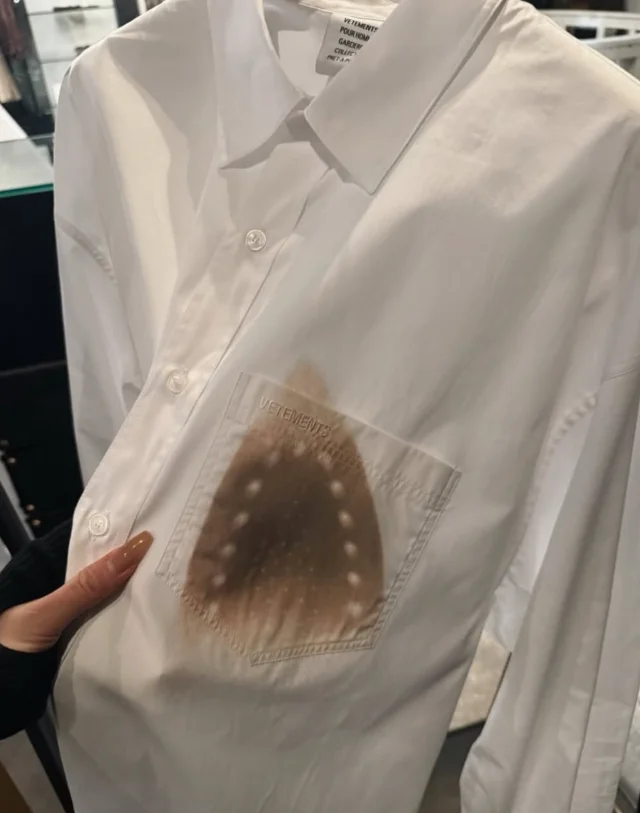Рубашка со следом от утюга (4 фото) Категория: Мода, PEGI 0+ Сегодня, 09:46 Удивительно, но, скорее всего, эту идею украли у дизайнера Martin Maison Margiela: он выпустил майку с похожей концепцией в 2007 году. 0 одежда, мода, стиль, Бренды