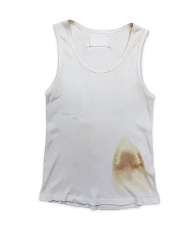 Удивительно, но, скорее всего, эту идею украли у дизайнера Martin Maison Margiela: он выпустил майку с похожей концепцией в 2007 году.