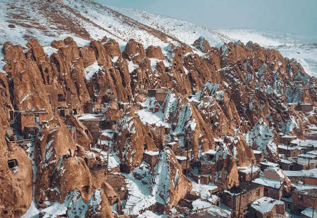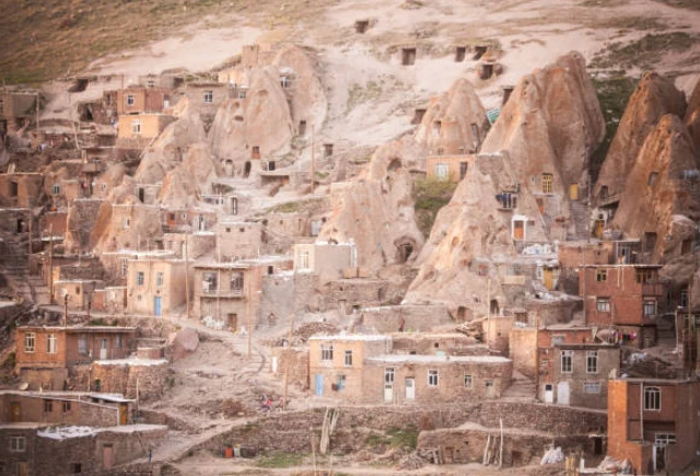 Местные жители называют эти многоуровневые пещеры «караан», и они торчат из склонов горы Сехенд, словно гигантский пчелиный улей, созданный природой и доработанный человеком.