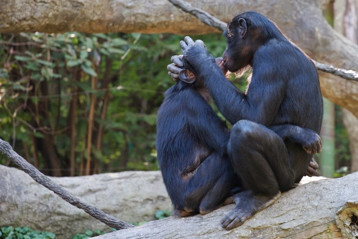 Смоделируем ситуацию: группа бонобо обнаружила ящик с фруктами. Что сделает любой другой дикий зверь? Правильно, накинется на еду, распихивая по пути всех тех, кто позарился на добычу. Что сделают бонобо? Накинутся друг на друга! Пир на короткое время превратится в оргию. Так обезьяны переведут напряжение от конкуренции за ресурсы в мирное русло. К трапезе приматы приступят абсолютно спокойно, согласно своему положению в стае. Таким способом решаются почти все конфликты и разногласия. За день бонобо могут вступать в половые отношения до 20 раз! Это каждые 1,5 часа!