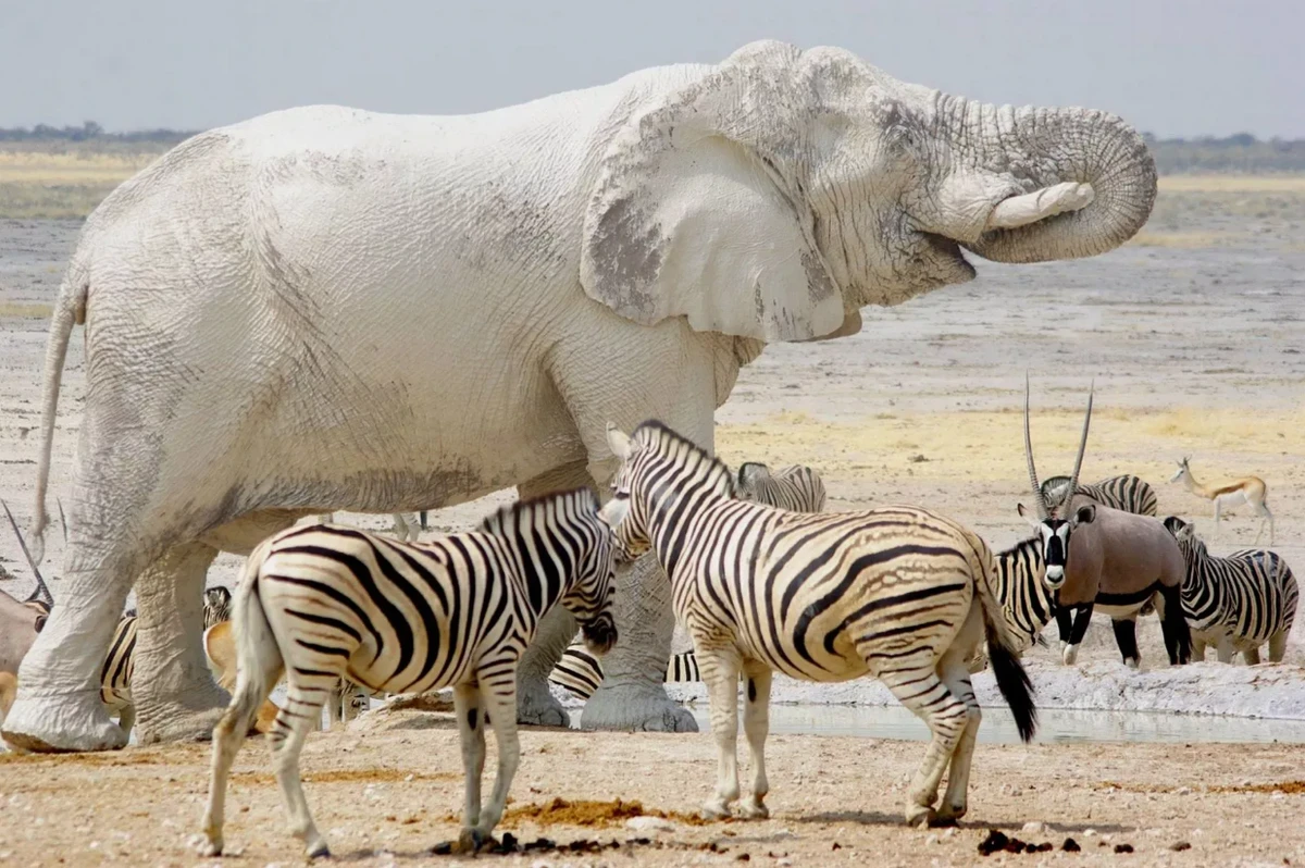 Африканские племена издревле рассказывают легенды о белых слонах-призраках, мифических существах, переполненных мистической силой. Они говорят, что встретить такого слона может лишь очень везучий или очень честный человек. Экскурсоводы национального парка Этоша не согласны. Они говорят: «Приезжайте к нам, у нас на белых слонов можно смотреть хоть каждый день!»