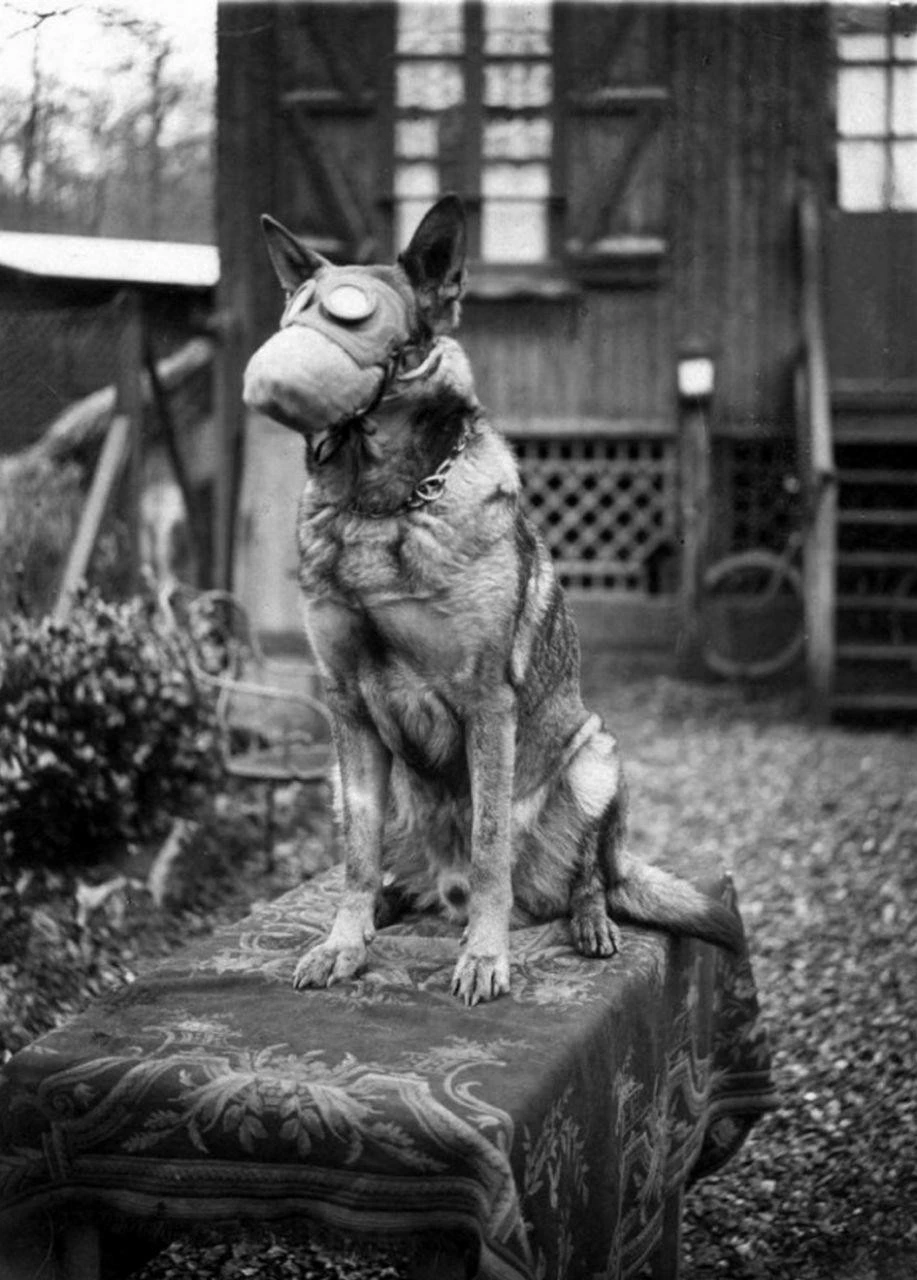 6. Собака, принадлежащая Французскому Красному Кресту, в противогазе, 1917 год