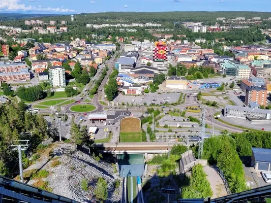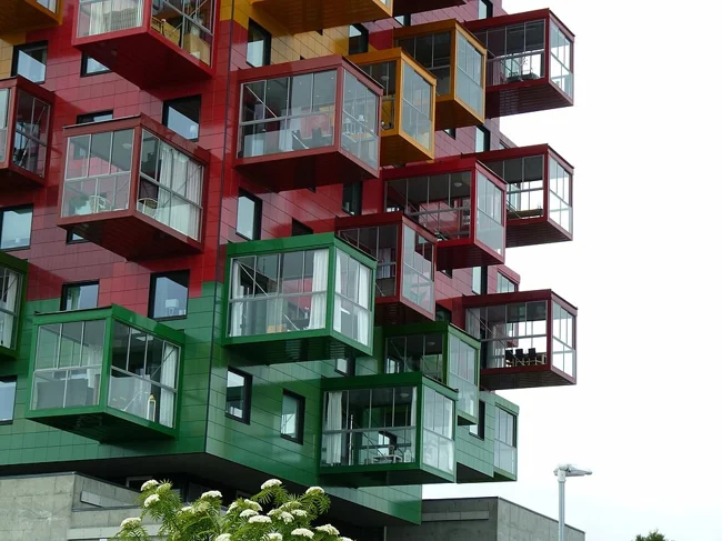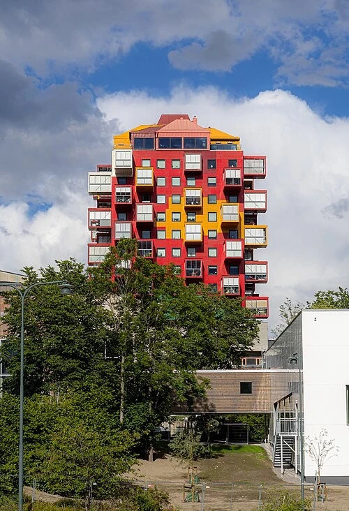 Автор проекта, знаменитый шведский архитектор Герт Вингорд, создал не просто жилой дом. Его 11 этажей украшают 78 стеклянных балконов, открывающих панораму на живописные скалы и легендарные трамплины для прыжков на лыжах.
