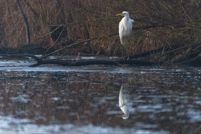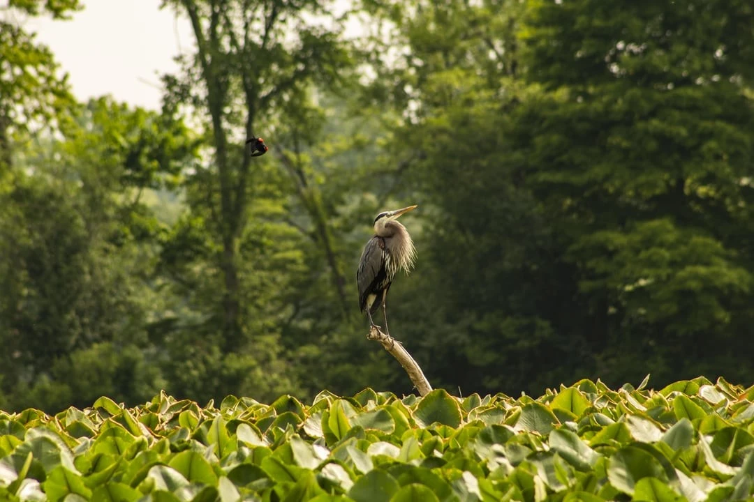 5. Большая голубая цапля и её маленький назойливый преследователь