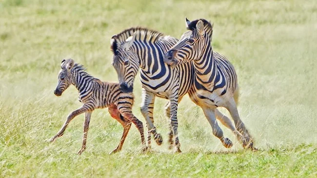 Но делать новых детишек зебры не торопятся. Беременность у самок длится примерно год, после чего ей нужно ещё пару лет, чтобы вырастить жеребенка и восстановиться. Поэтому при всей внешней массовости зебры размножаются медленно и неэффективно. Каждая потеря детёныша — серьёзный удар по популяции.