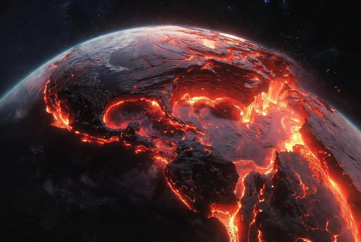 В результате до поверхности доходит слишком маленький "поток" тепловой энергии, чтобы прогреть всю планету до температур плавления: Земля просто медленно теряет тепло (оно уходит в космос), а не "закипает" изнутри. При этом мантия не "плавится снизу" так, чтобы расплав постепенно поднимался все выше. В глубине давление повышает температуру плавления пород, поэтому даже при высоких температурах нижняя мантия в основном остается твердой. А там, где расплав все же появляется, он обычно не накапливается: поднимаясь, он попадает в более холодные области и частично кристаллизуется. В итоге в недрах Земли не существует "роста" океана расплава снизу вверх — возникают лишь отдельные зоны частичного плавления.