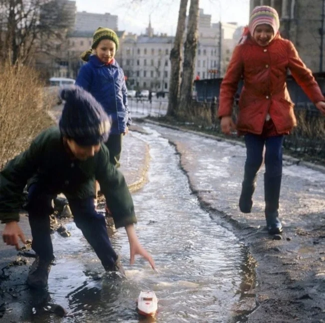 17. Весна, лужи, кораблики. Москва, 1982 год ![]()