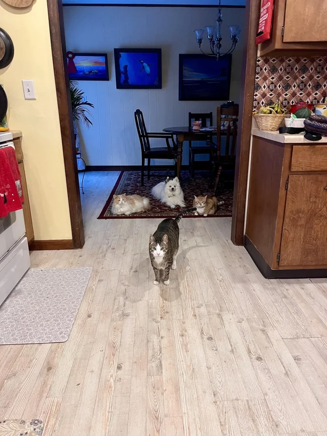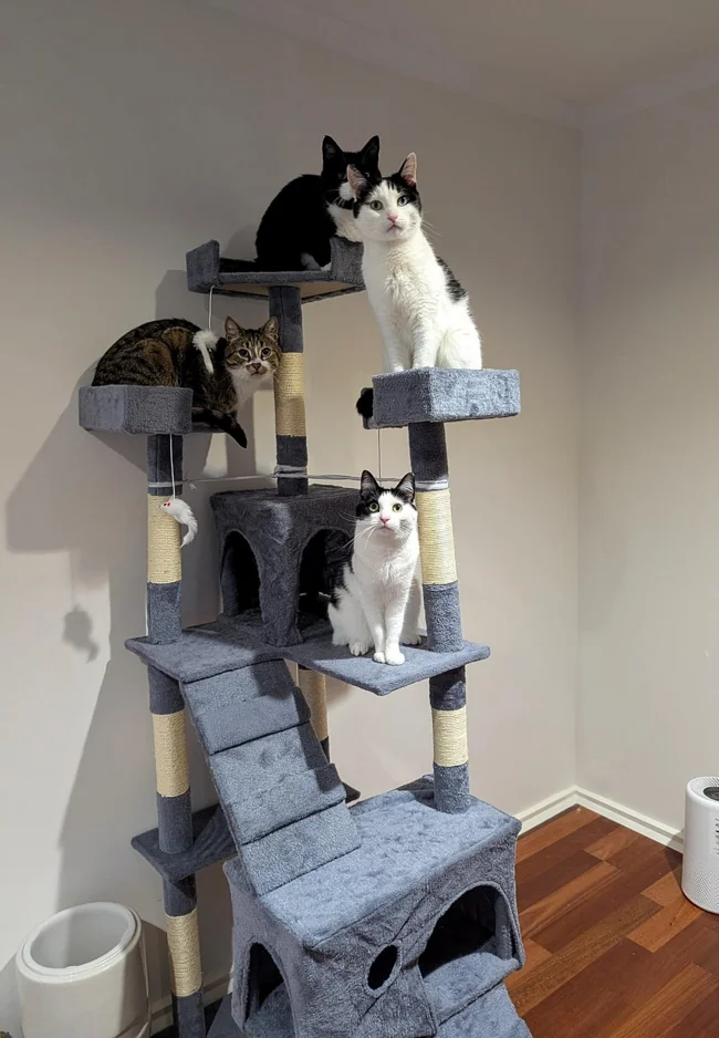 Наши пушистые соседи по квартире давно создали тайное общество. У них есть иерархия, планы, секретные сигналы и, кажется, полное презрение к нашей недогадливости. Эти 30 кадров пойманы в нужный момент. На них запечатлены кошачьи собрания в ванной, безмолвные переговоры в домике и посты наблюдения на улице. Листайте осторожно. И учтите, что если ваш питомец сейчас смотрит на вас слишком пристально, то, возможно, он просто сверяет ваше лицо с секретным кошачьим списком.