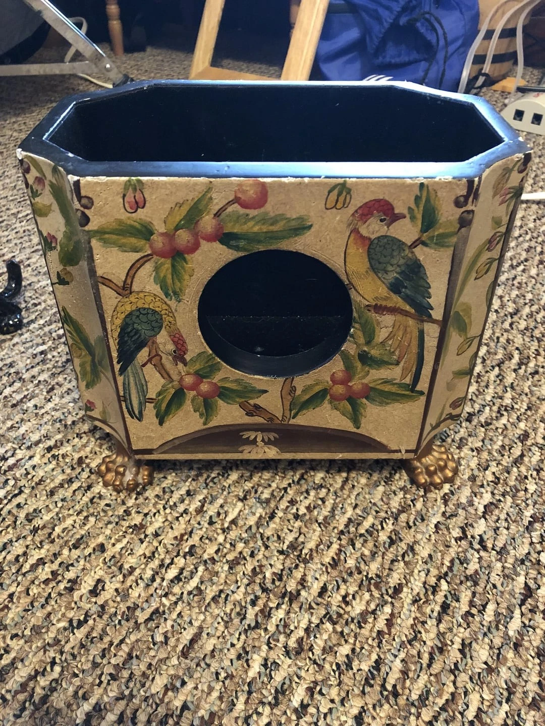 7. Прямоугольная коробка на лапках с отверстием спереди и изображениями птиц