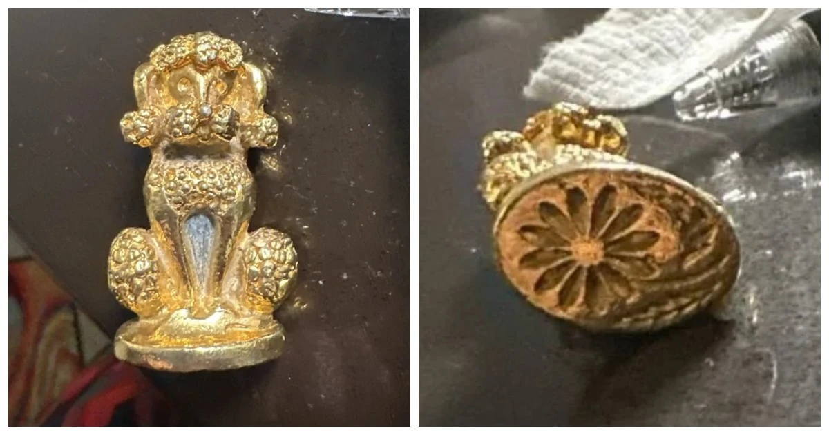 9. Маленький позолоченный пудель с узором на основании