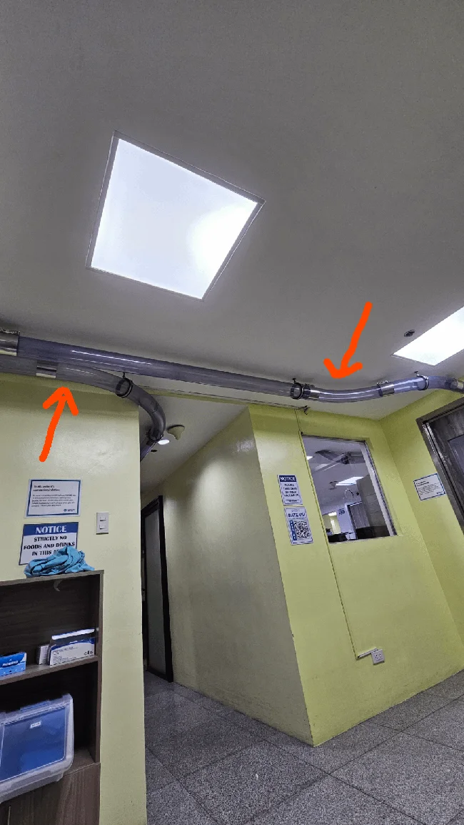 3. Странные широкие трубы под потолком в кабинете