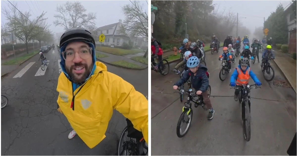 Школьный учитель из Портленда Сэм Балто каждое утро собирает учеников своего района и вместе с ними едет в школу на велосипедах под громкую музыку. Своей гениальной затее он дал название «Bike Bus». Дети так полюбили совместные поездки, что с радостью встают очень рано, даже в плохую погоду.