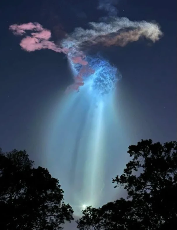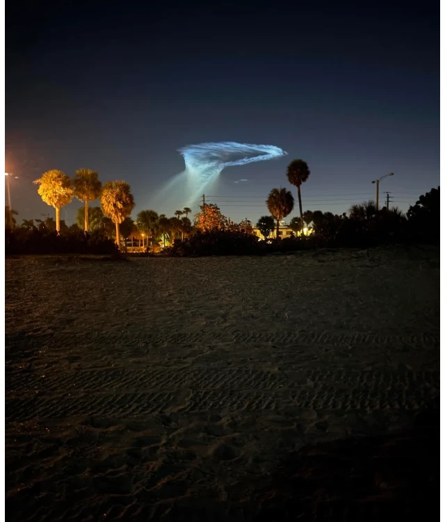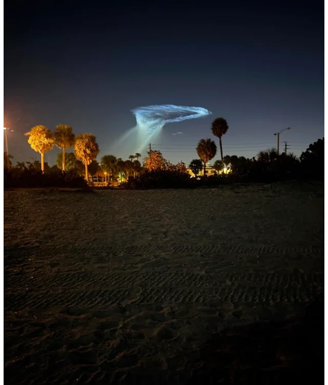 Ранним утром над побережьем Флориды жители заметили в небе необычное светящееся облако, напоминающее гигантскую медузу. Как выяснилось позже, эффектное явление возникло после запуска ракеты Falcon 9 компании SpaceX. Во время подъёма выхлопные газы ракеты на большой высоте подсветились лучами восходящего солнца, из-за чего образовалась яркая «космическая медуза». Подобные световые эффекты иногда наблюдают после запусков ракет, однако каждый раз они привлекают внимание очевидцев и быстро распространяются в соцсетях.