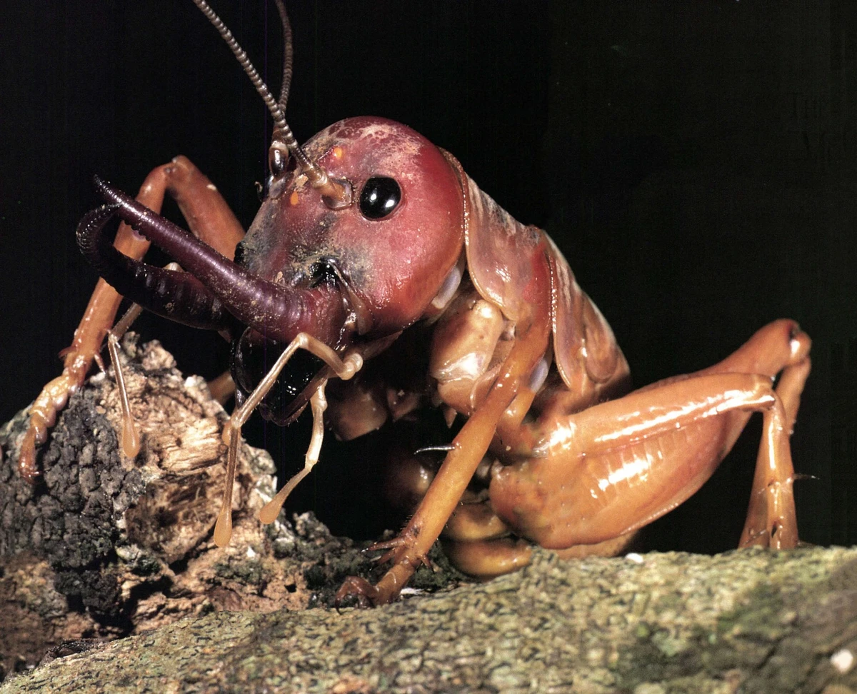 Значительно подросшие кузнечики постепенно расселились по всем крупным островам Новой Зеландии, разделились на 11 видов и плотненько заселили все ландшафты. Одни переселились на скалы и каменистые россыпи, другие забрались на деревья, а третьи остались копаться в листовом опаде. Но все они, вне зависимости от места жительства, готовы жрать всё, что не приколочено.