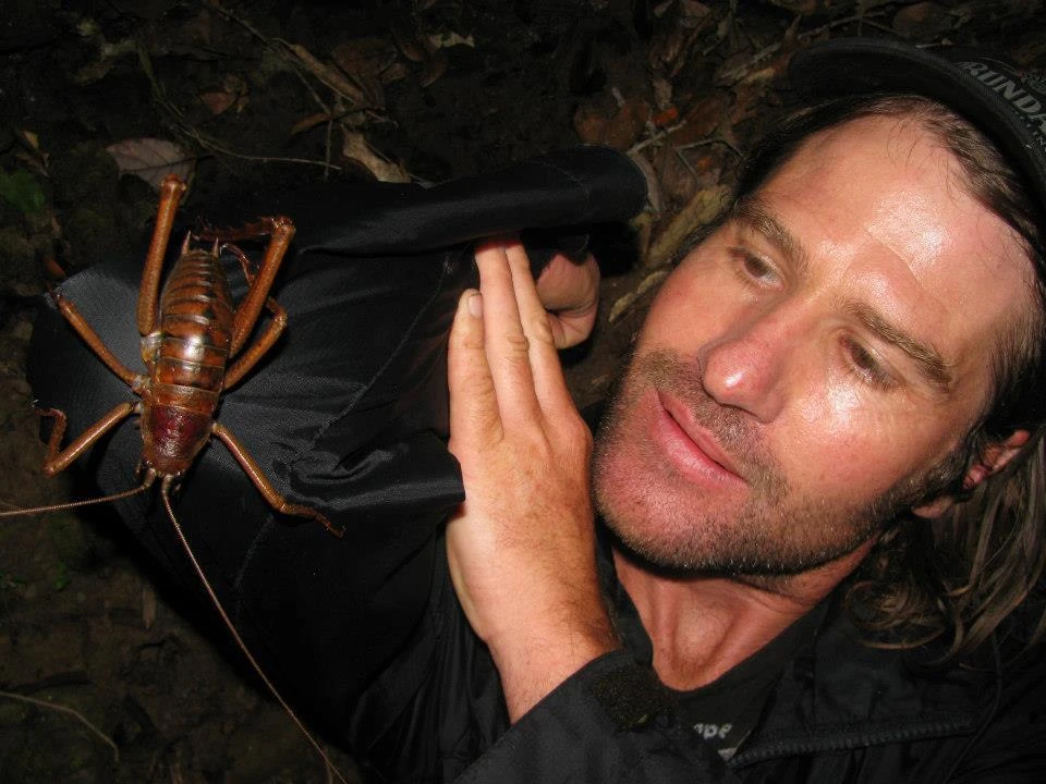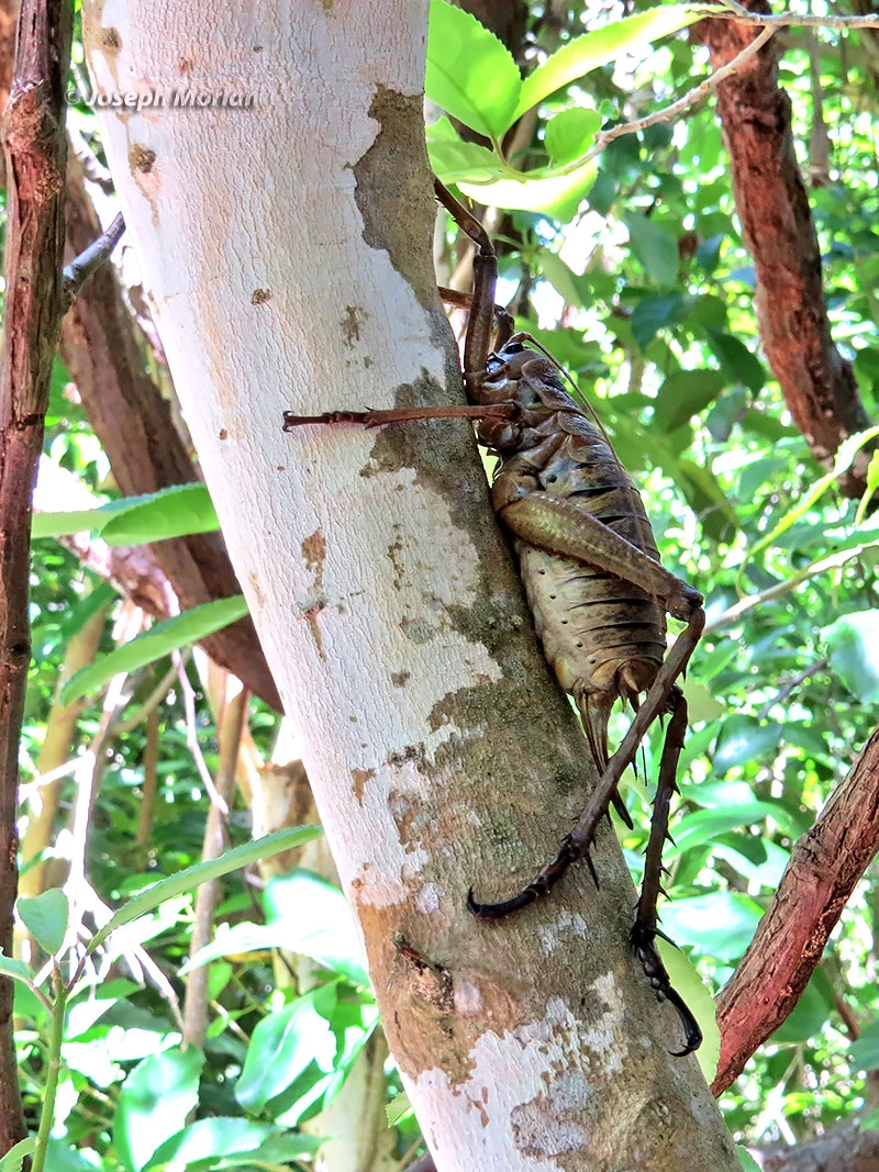 А это рогатая демоническая уэта. Родственный, но другой вид. Самцы используют свои «рога» для борьбы за самок, прямо как жуки-олени!