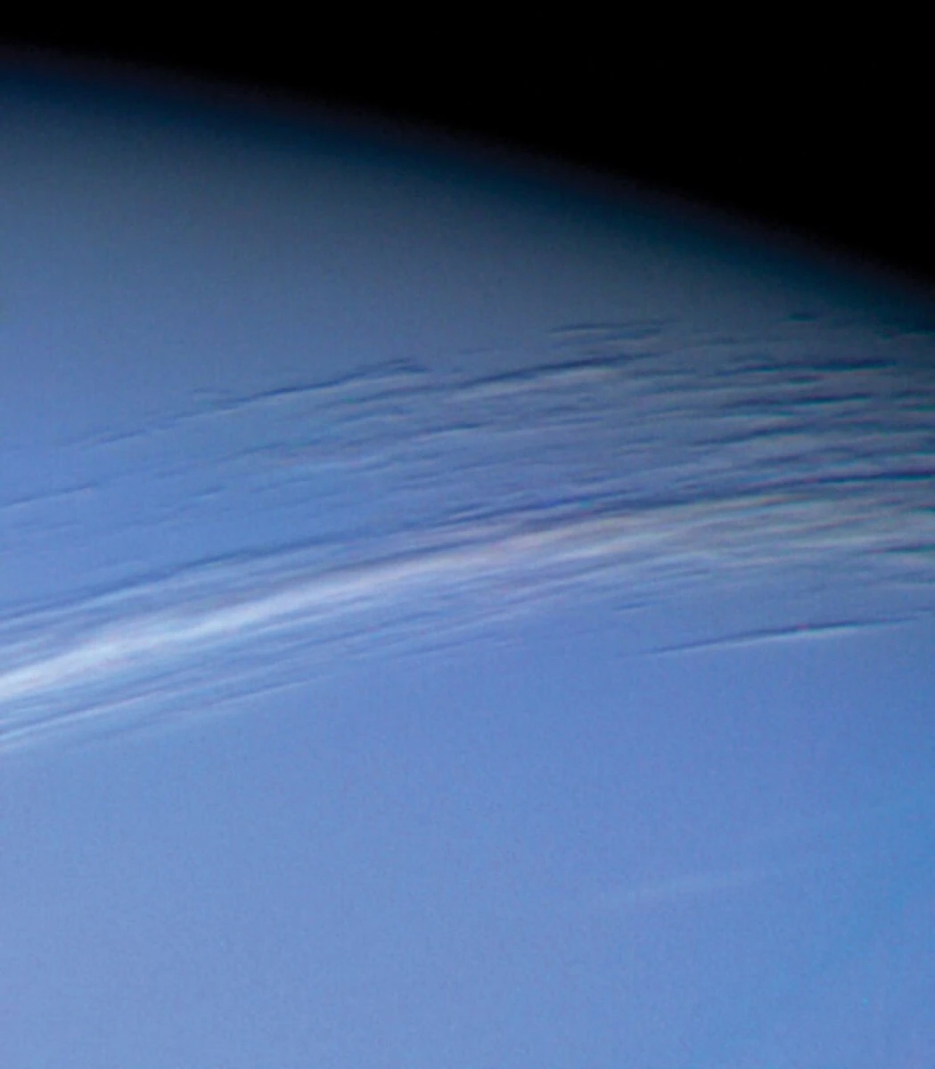 25 августа 1989 года космический аппарат NASA "Вояджер-2" передал на Землю изображение, на котором видны белые перистые облака в верхних слоях атмосферы планеты.